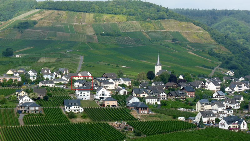 Nur 100 m von unserem Haus entfernt befindet sich das mitten in den Weinbergen gelegene beheizte Freibad .